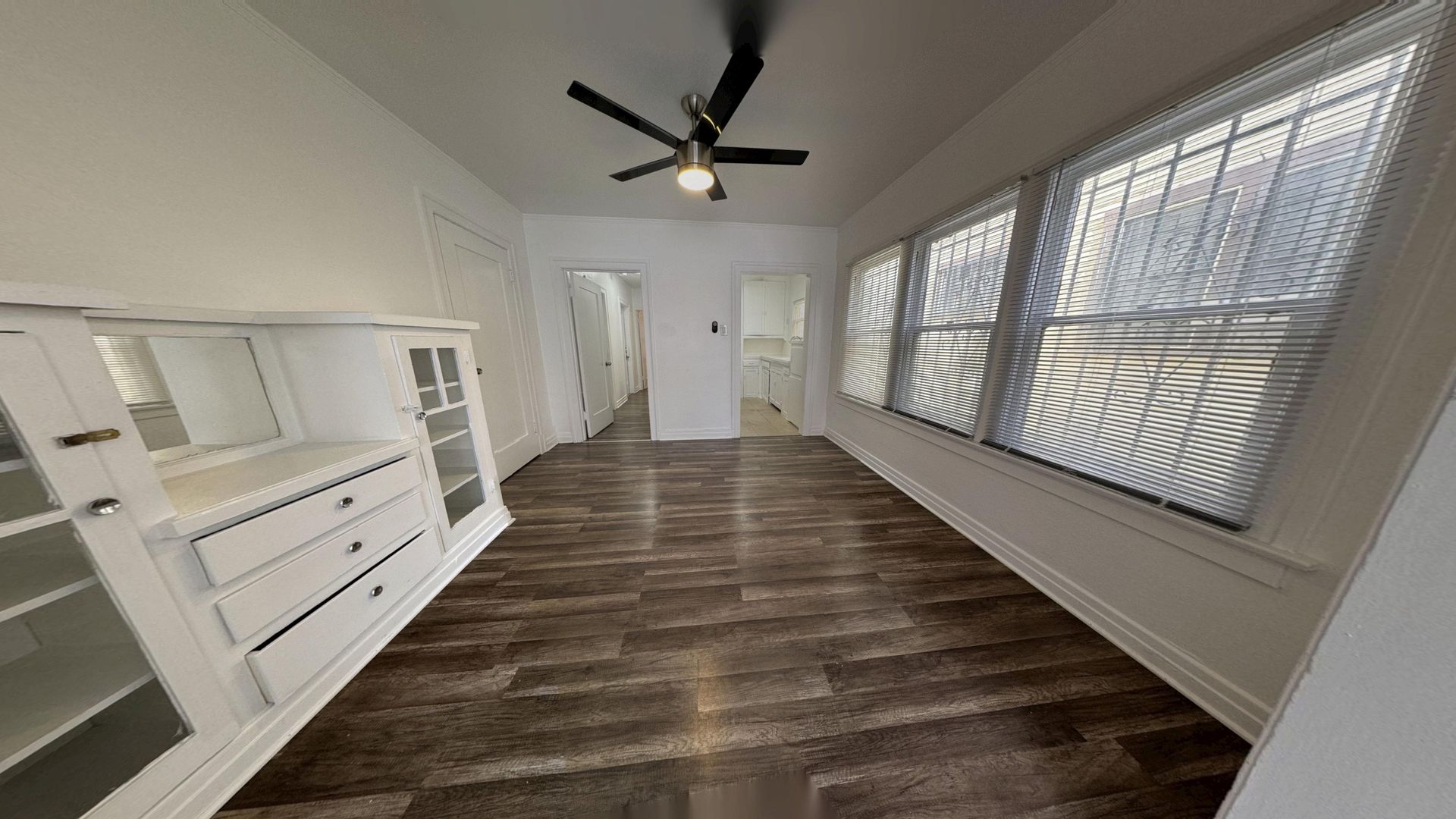 Unit Features: 1 Bedroom / 1 Bathroom. Engineered wood flooring throughout, Fresh interior paint, Charming vintage kitchen cabinets, Ceiling-height tile bathroom. No upstairs neighbor, Individually metered for gas and electricity